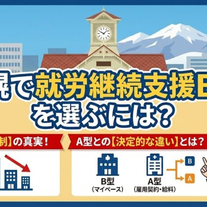 2026年現在、札幌市ではB型事業所に関する重要な制度変更が進んでおり、事業所選びにおいて知っておくべき情報があります。この記事では、B型事業所の基本から選び方のポイント、そして2027年4月に控える総量規制の影響まで、詳しく解説します。