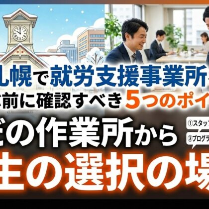 札幌市内には500以上の就労継続支援B型事業所があり、どこを選べばいいか迷っている方も多いのではないでしょうか。